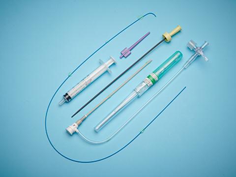 無菌血管內導管附件:——該產品用于血管造影,是經皮穿刺插管的主要工具之一?!摦a品由導管鞘、擴張器、親水性導絲、注射器、導引套管、穿刺針和切膚刀組成。